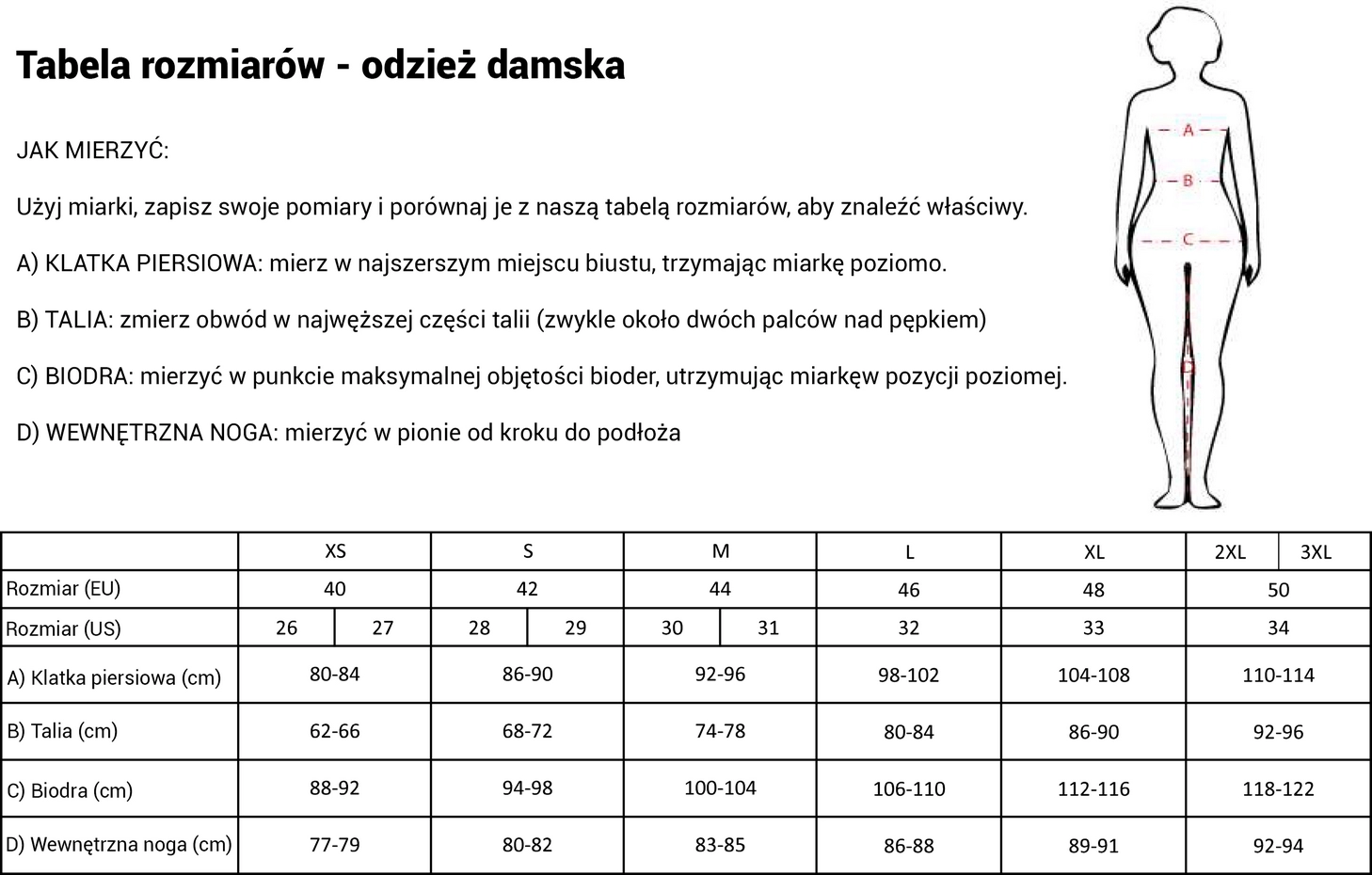Tabela rozmiarowa